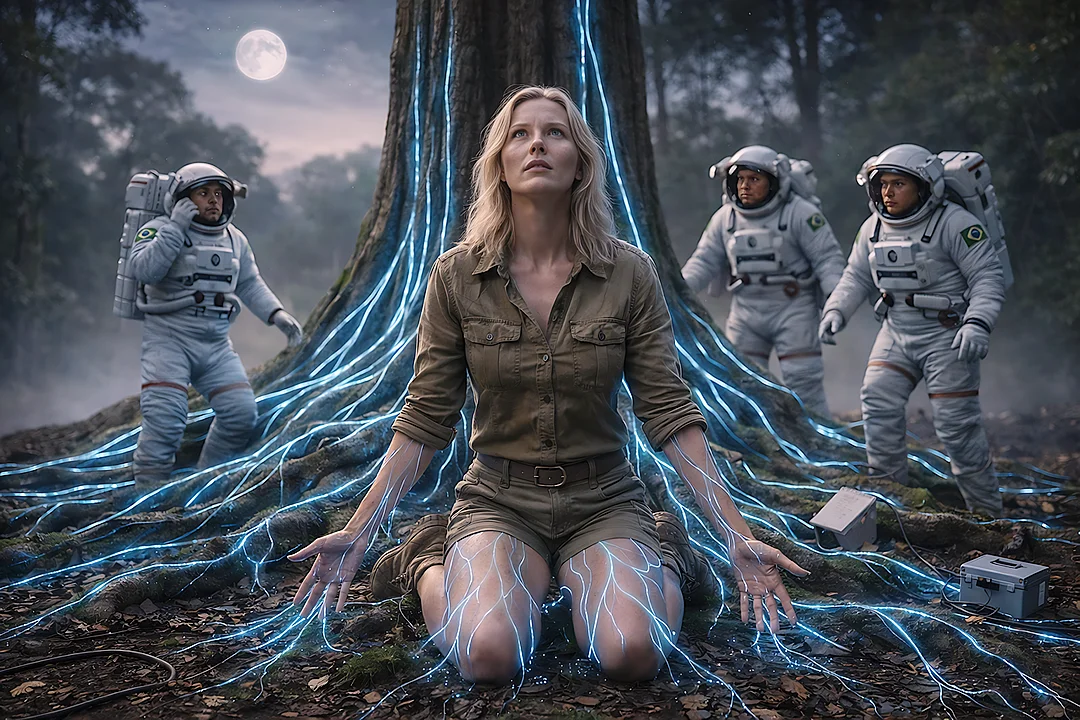 É nesse ponto que a ponte com a ficção se torna particularmente fértil. Em *Cyberamazônia*, a ideia de uma rede viva que conecta organismos e sustenta uma forma de inteligência coletiva não surge do nada. Ela se apoia em fenômenos reais, como a redistribuição de nutrientes e a interconexão promovida pelos fungos. O que a ficção faz é estender essas propriedades até um limite em que a rede deixa de ser apenas funcional e passa a ser também cognitiva.